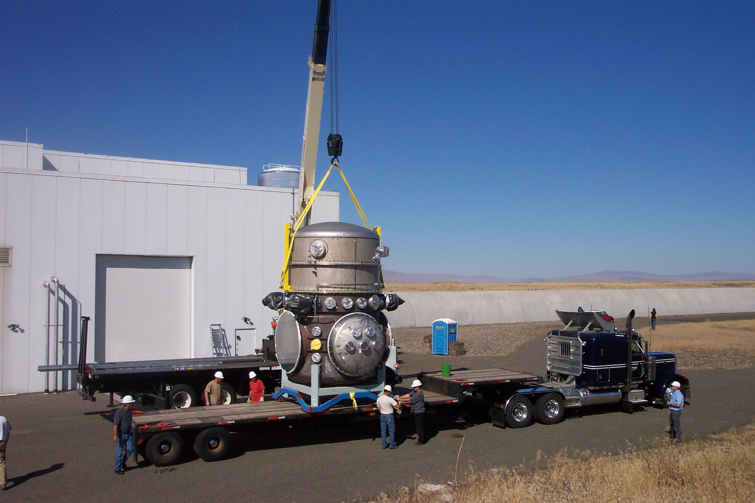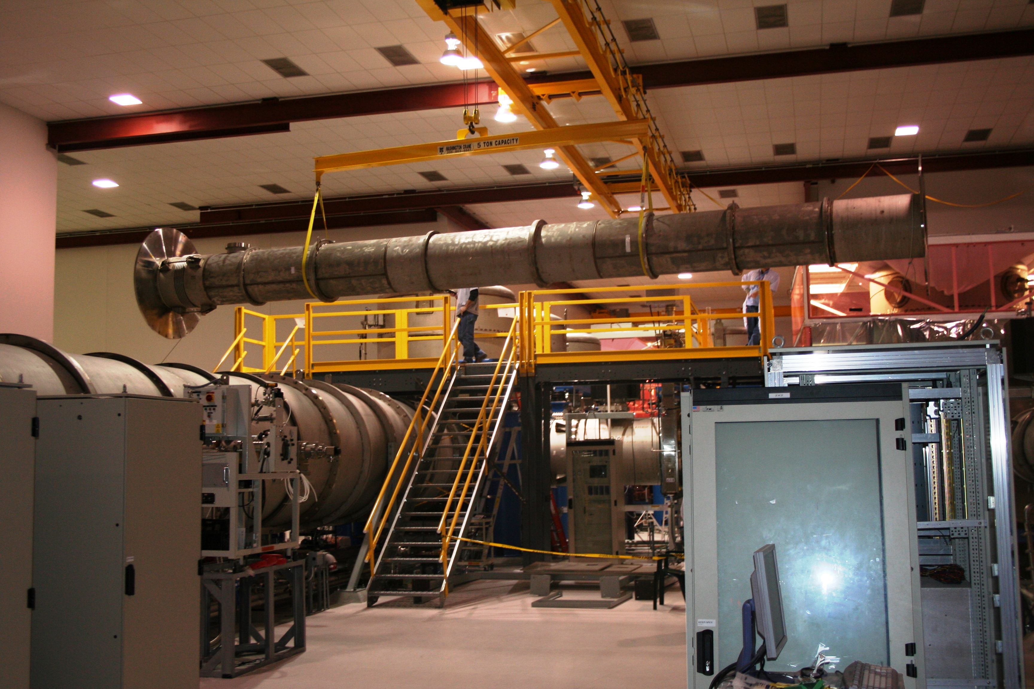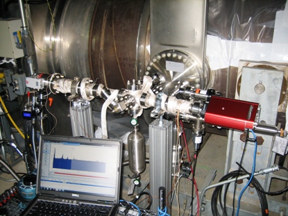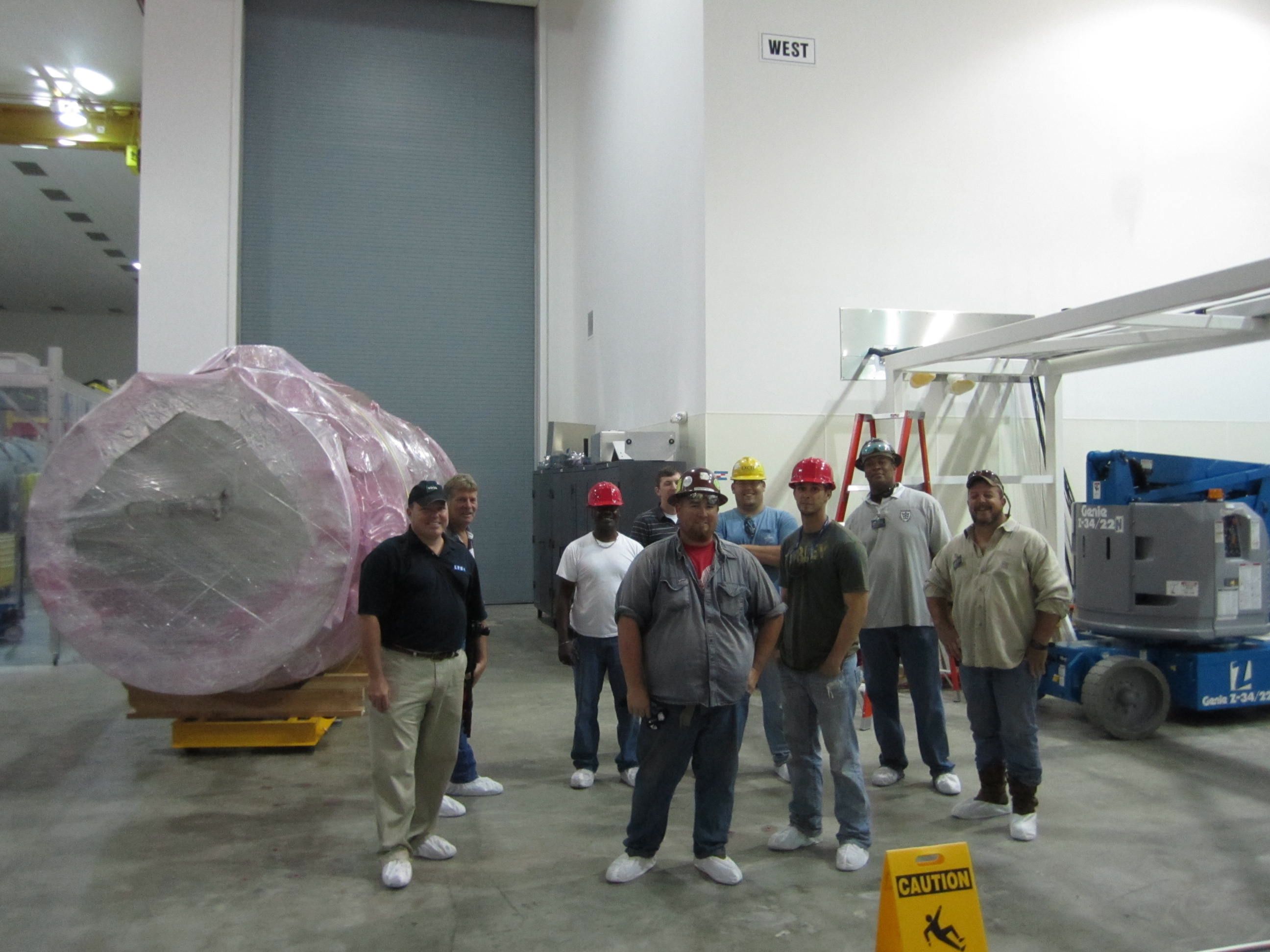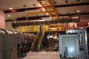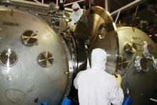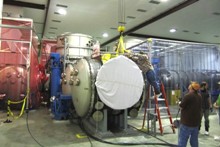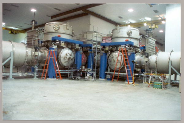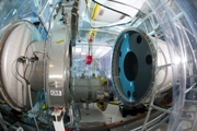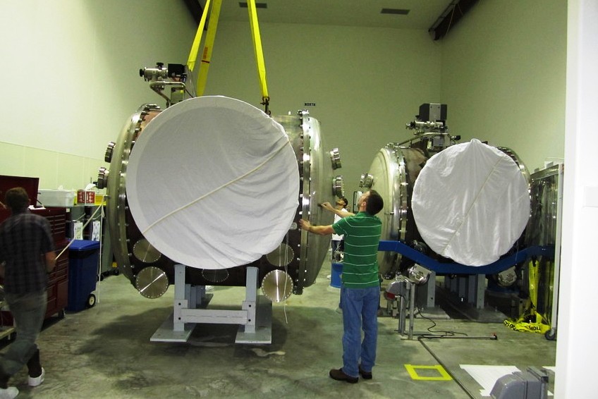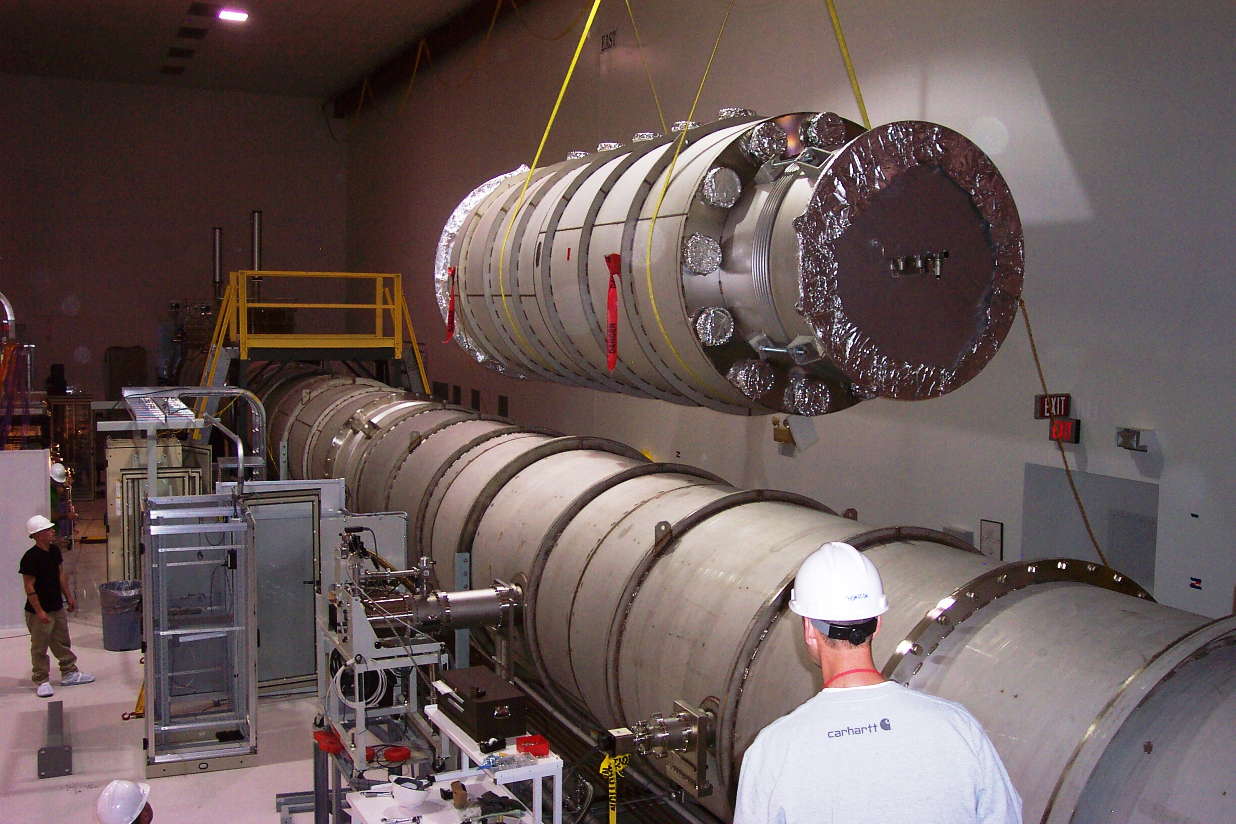 visible above the beam pipes to either side of the chambers