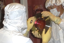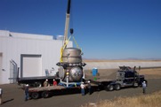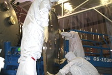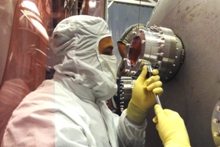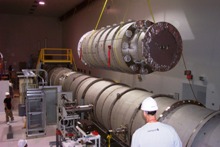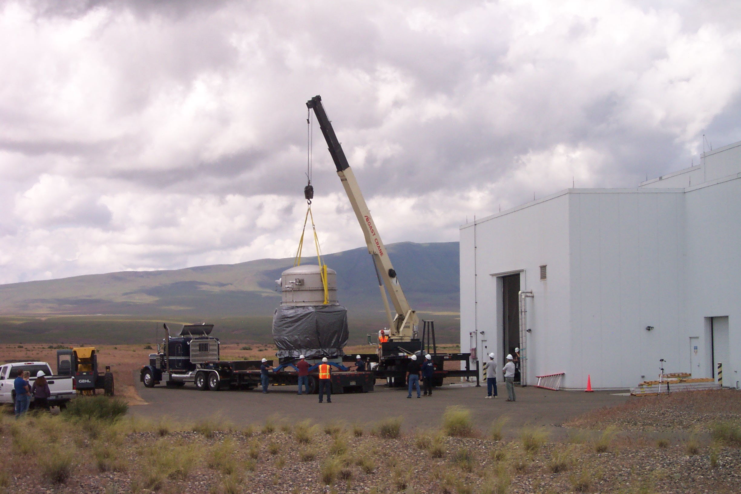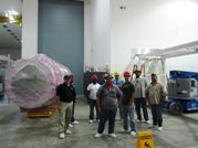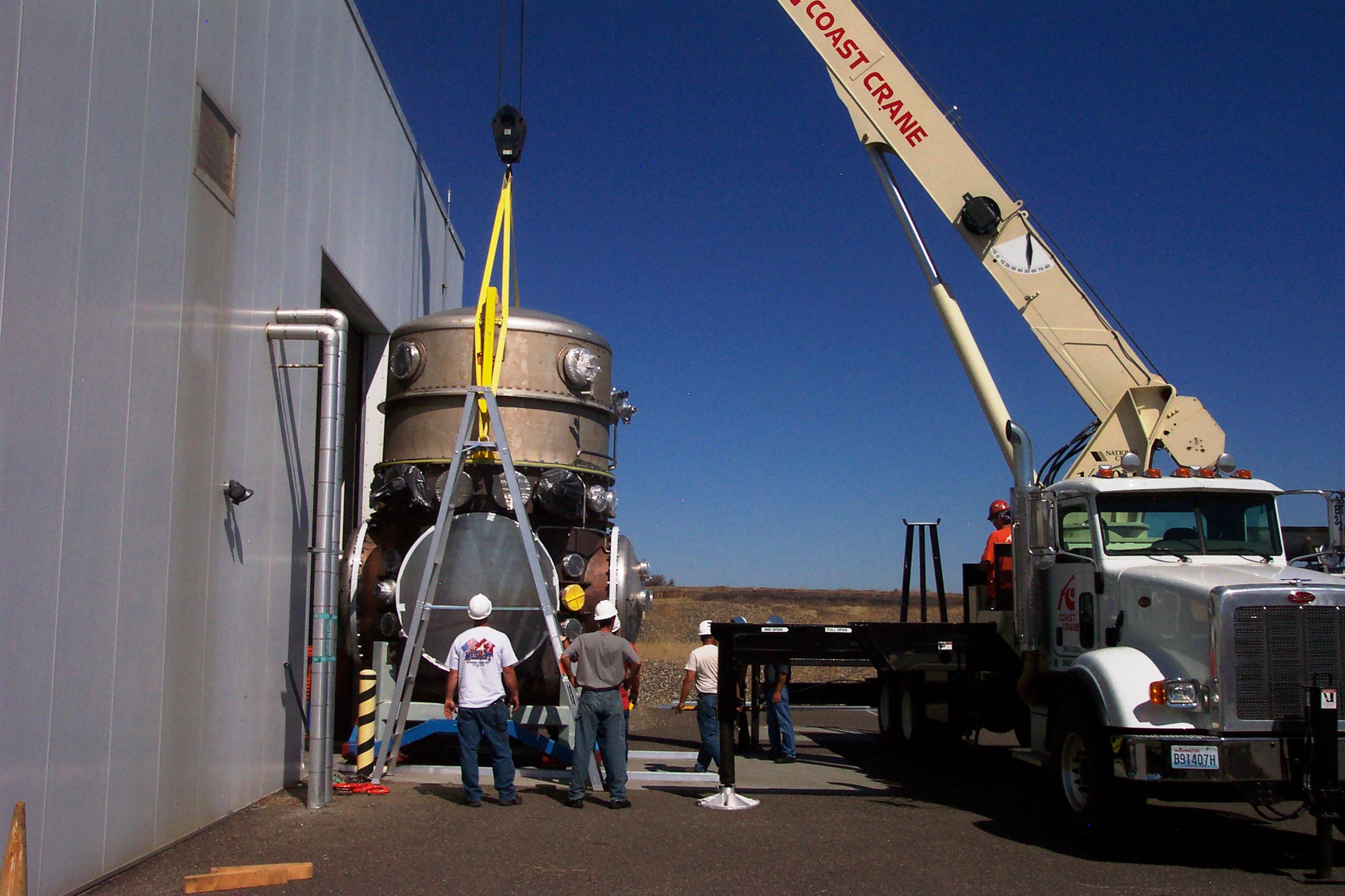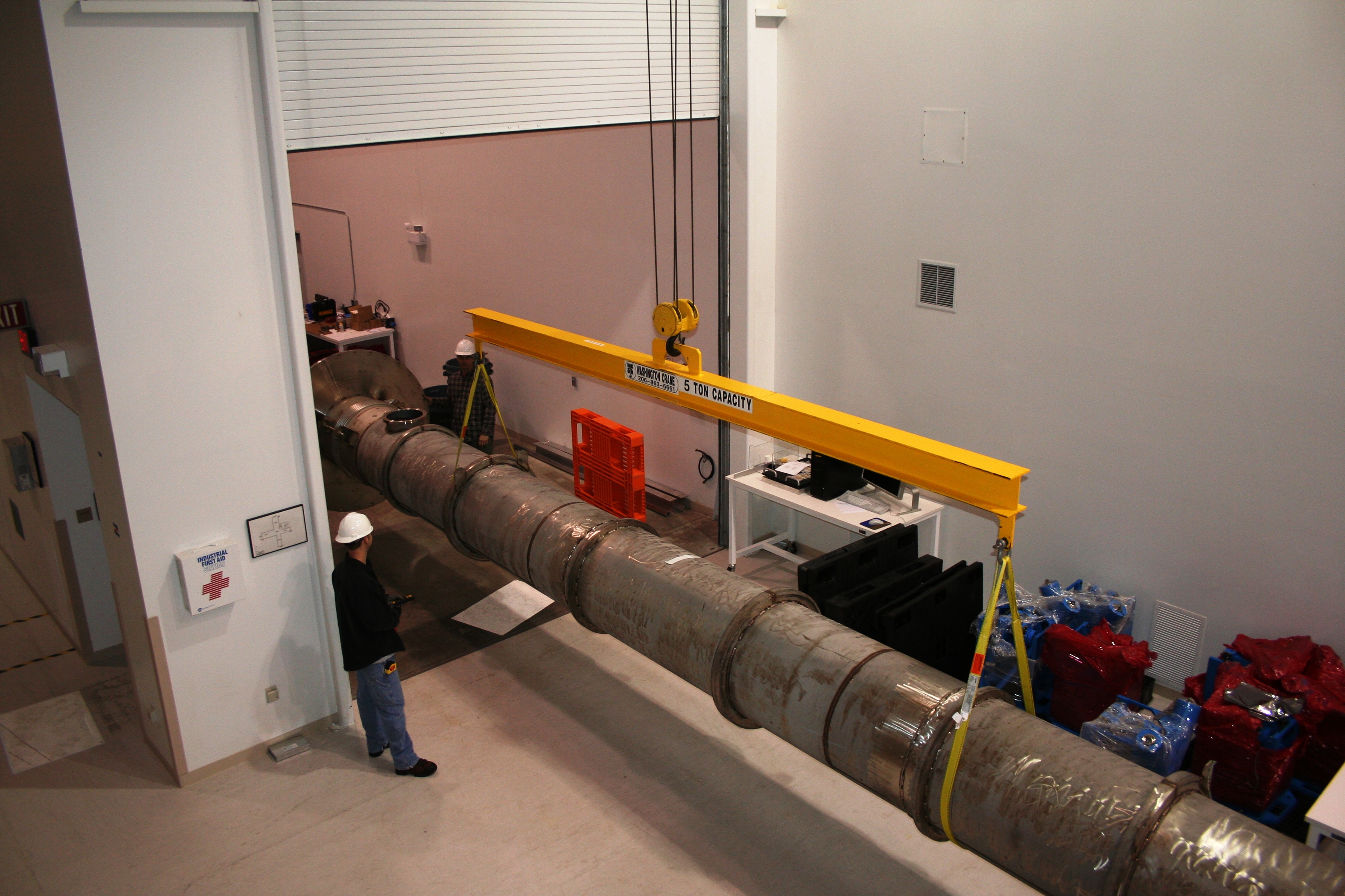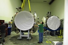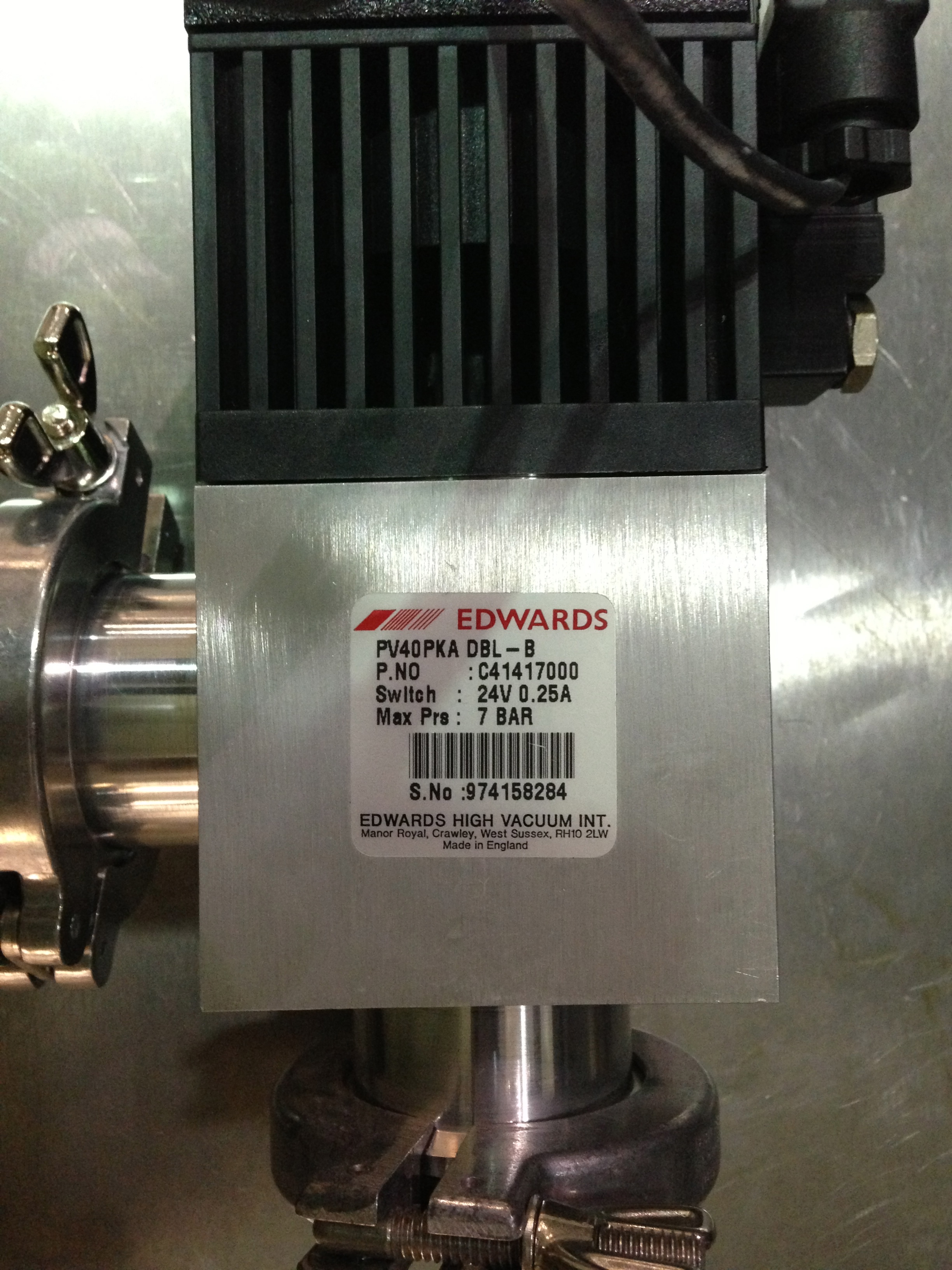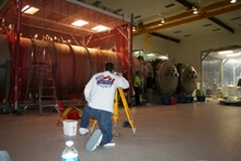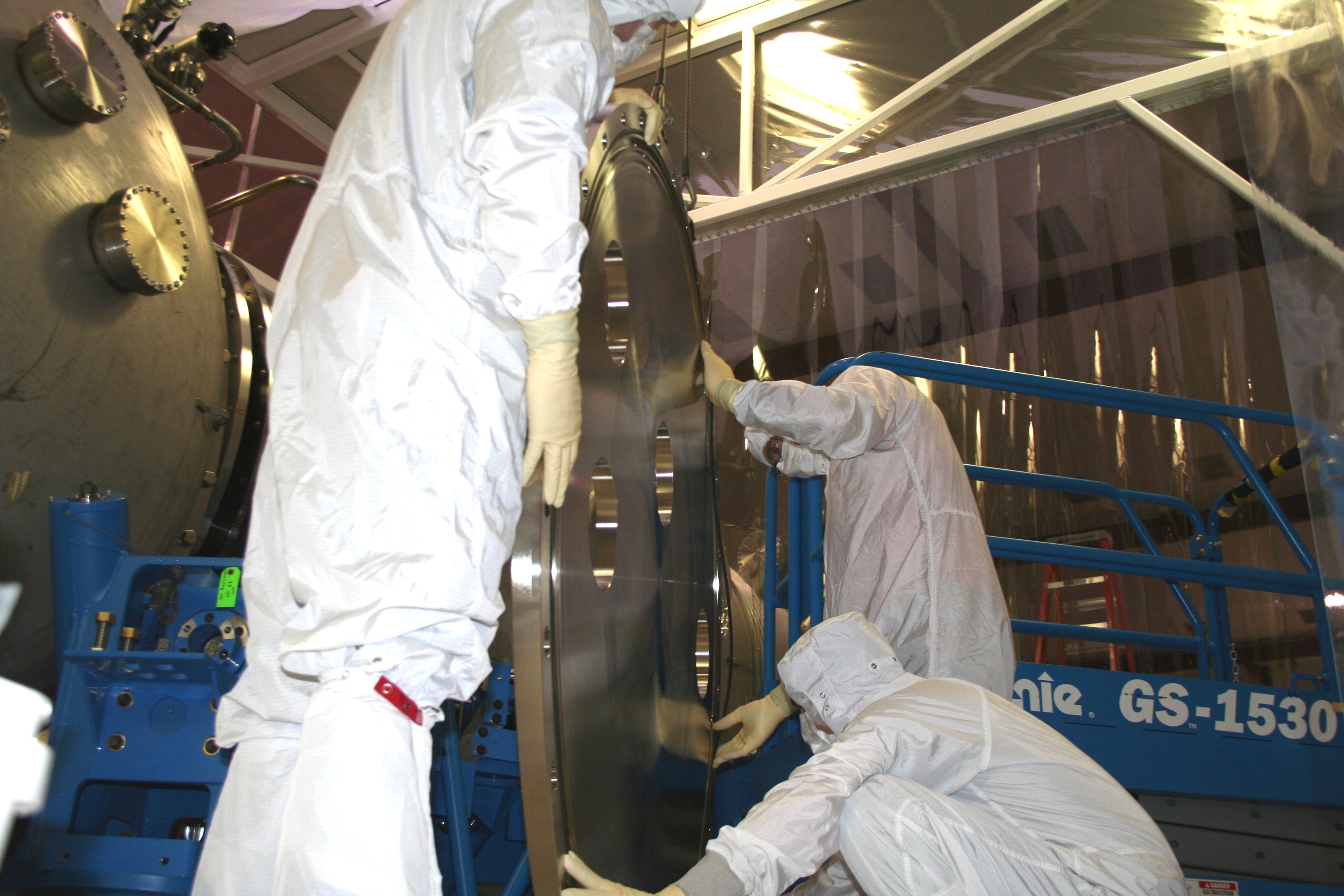 visible above the beam pipes to either side of the chambers