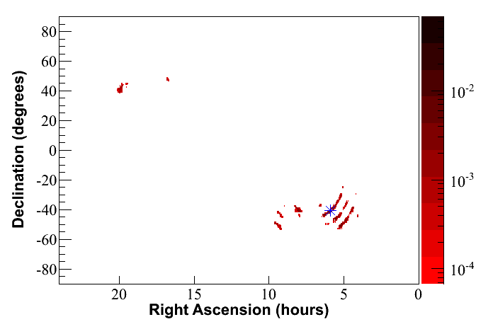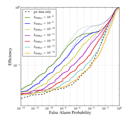 In addition to following up two actual triggers, a more extensive study was conducted with computer simulations to see how much a corresponding X-ray detection could increase our confidence that we really had detected a gravitational wave. In this study, realistic X-ray signals were combined with simulated gravitational waves originating from nearby galaxies. The results from this hypothetical population of sources were compared with real background distributions. The figure on the bottom right shows the results of the simulation. For reference, some areas of physics consider a 5 sigma false alarm probability, between 10-8 and 10-7 on the plot, to be an unambiguous detection. It is clear from these simulations that coincident X-ray sources could dramatically increase our confidence in a gravitational wave observation.