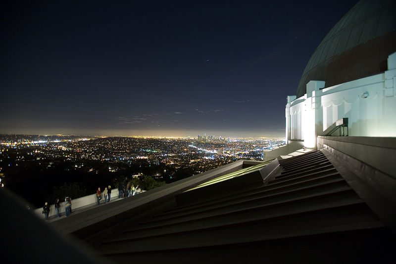 In the hills above Los Angeles, Griffith Observatory looks over the city. From the observatory deck at night, one can see beautiful lines of light along city roads, tracing the paths of cars as people hurry home or go out to enjoy the nightlife. If you are sitting in one of those cars, you can see some of the same lights, but other cars nearby block some of the view - so you don't know if the traffic jam will ever end!